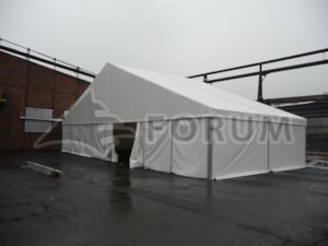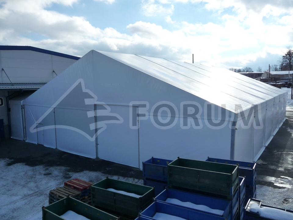 Thanks to our cooperation with Serge Ferrari, a leading global manufacturer of PVC tarpaulins, we have been able to offer top-quality tarpaulin cladding designed primarily for warehouse tents since the beginning of 2015. The new Precontraint P 782 material, with its uncompromising properties and reduced flammability class B, guarantees an increased service life of approximately 20 years. We can offer all this at very favorable conditions. This investment will definitely pay off and you will appreciate it in the future. Upon request, we will be happy to introduce this new material to you and include it in our price quote. Here you can see two examples of completed projects where clients took advantage of this offer this year. The warranty on the cladding has been extended to 7 years!