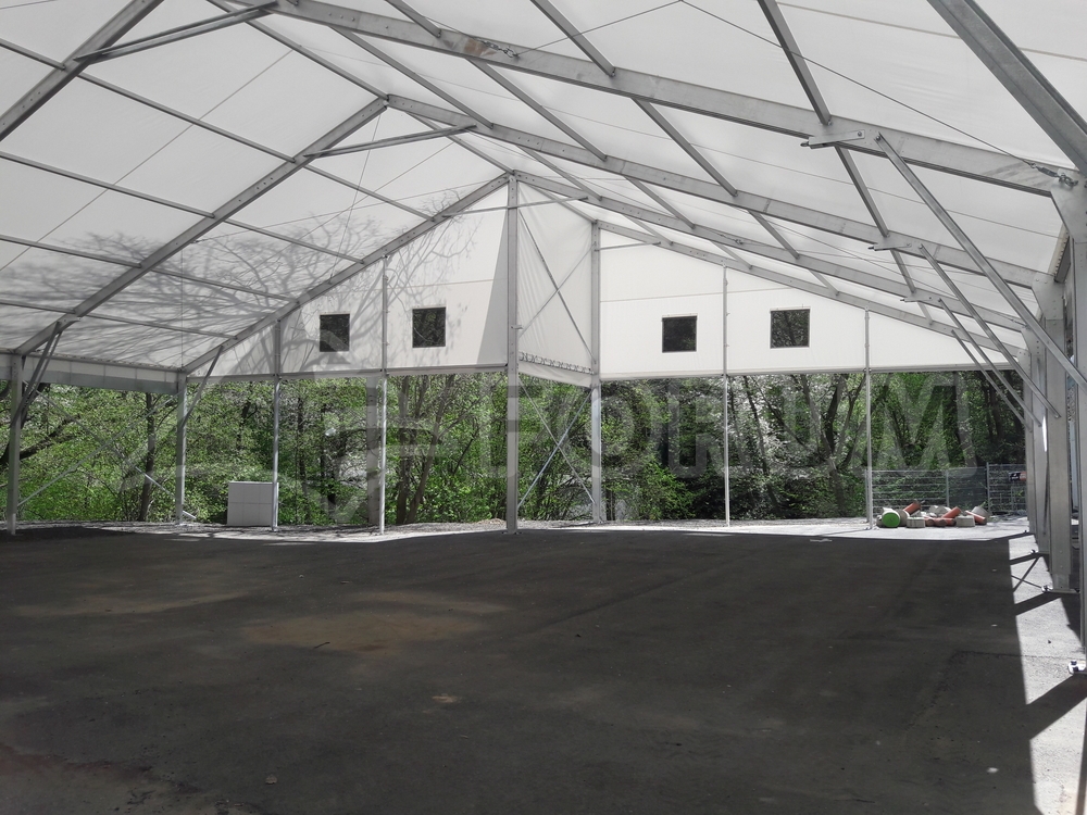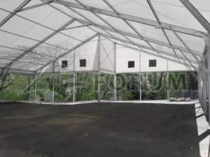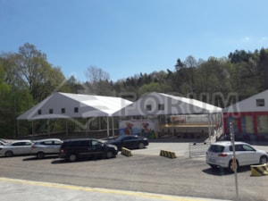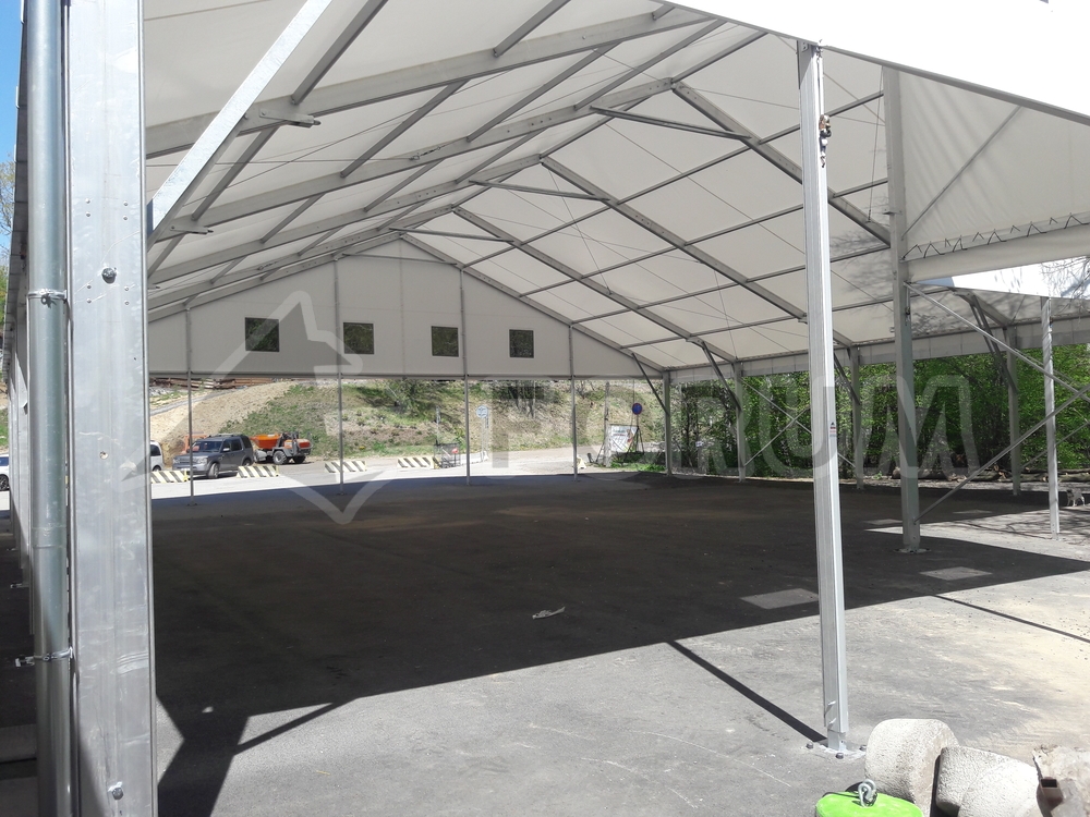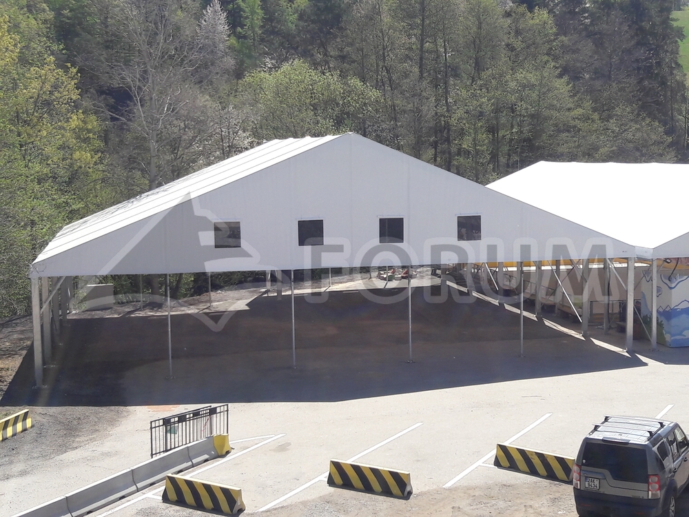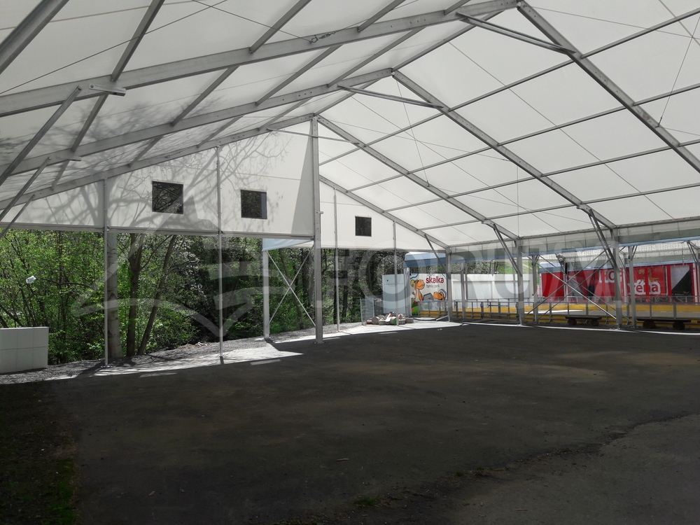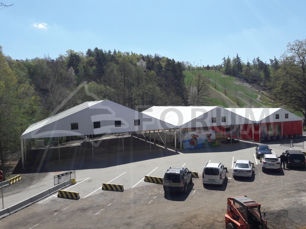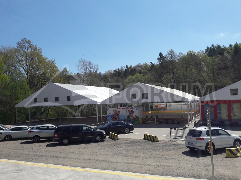 We have once again expanded the play and sports areas at the Family Park Skalka entertainment complex in Ostrava Poruba. This time, we added a large 22 x 24 m area with a wall height of 4 m. The floor plan of the tent hall features a corner cutout in accordance with the conditions of the building site. Bouncy castles and other fun attractions for children are hidden under the hall. A simple, practical, and quick-to-assemble solution. This completed the entire stage of roofing several sports and entertainment venues with a total area of more than 900 m². The assembly was carried out on the existing asphalt surface.