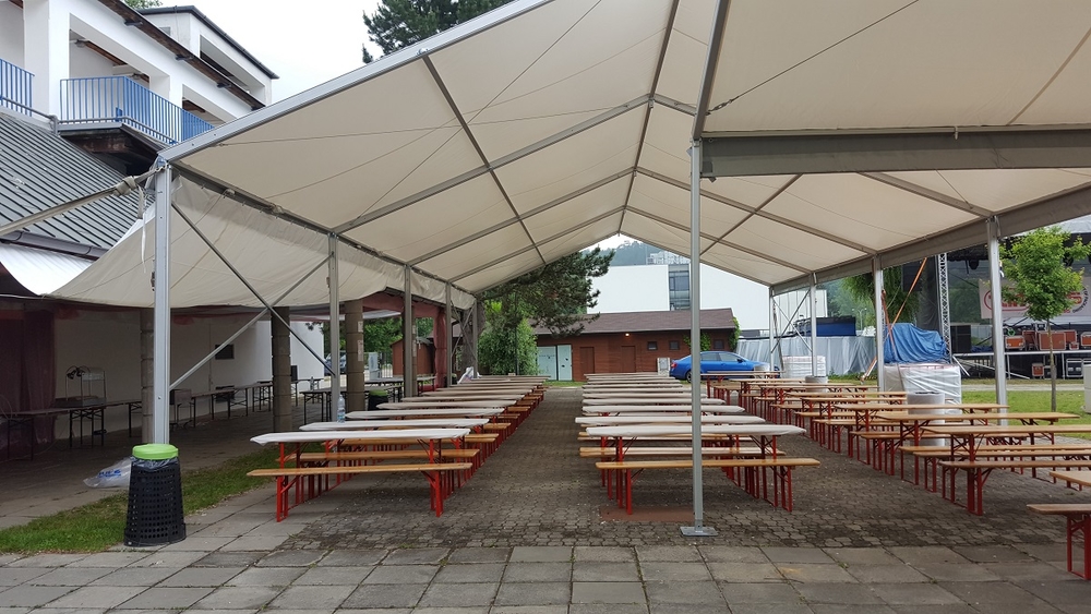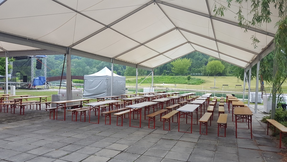 This year, the swimming season on the Riviera began with our large tents, which measured 10 x 20 m with a height of 3.7 m at the eaves.