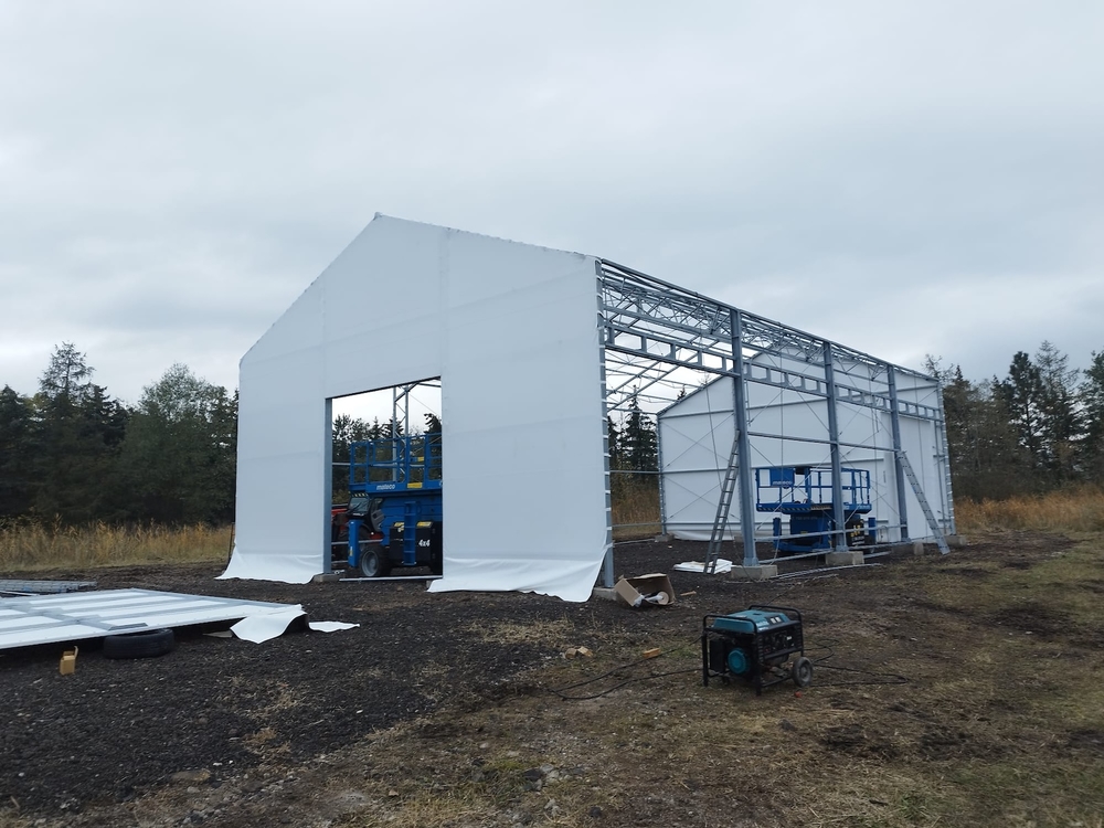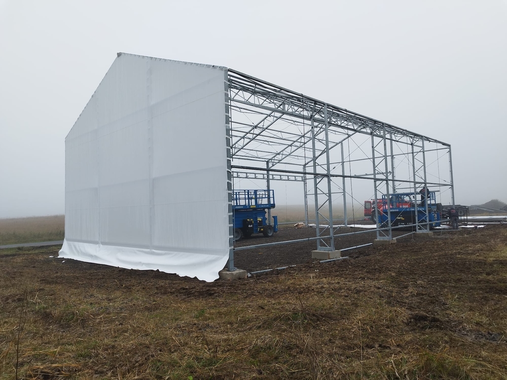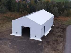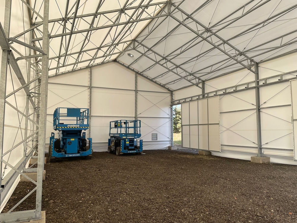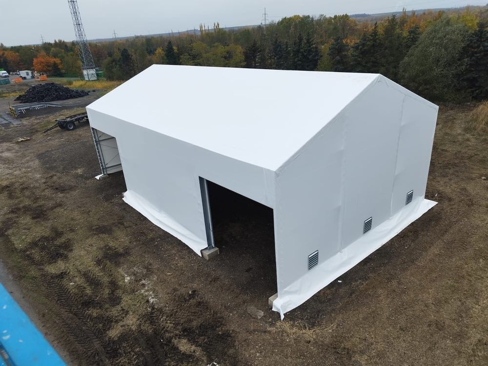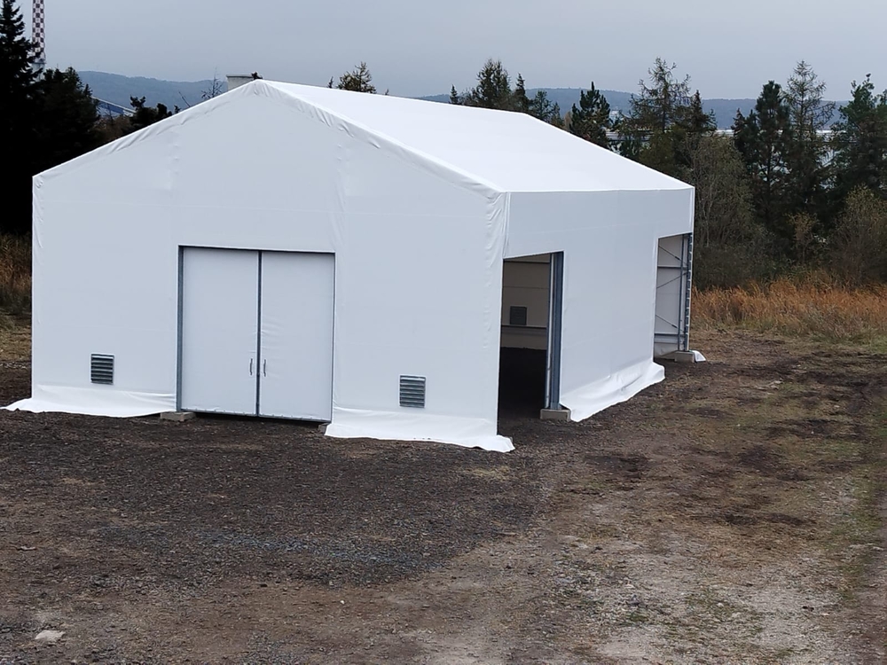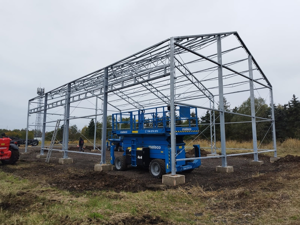 Custom steel structures are manufactured directly in our factory. We design structures that meet local snow and wind conditions according to the required parameters. We are not limited by size or location, we can meet the criteria for a solid structure anywhere :)! Here is a small example of a 12x20m steel structure with a 5.5m side wall. Built for the City of Chomutov. The hall is fitted with tarpaulin cladding, three sliding doors, and a ventilation system. Anchored to concrete foundation footings. It will be finished in a few days :).