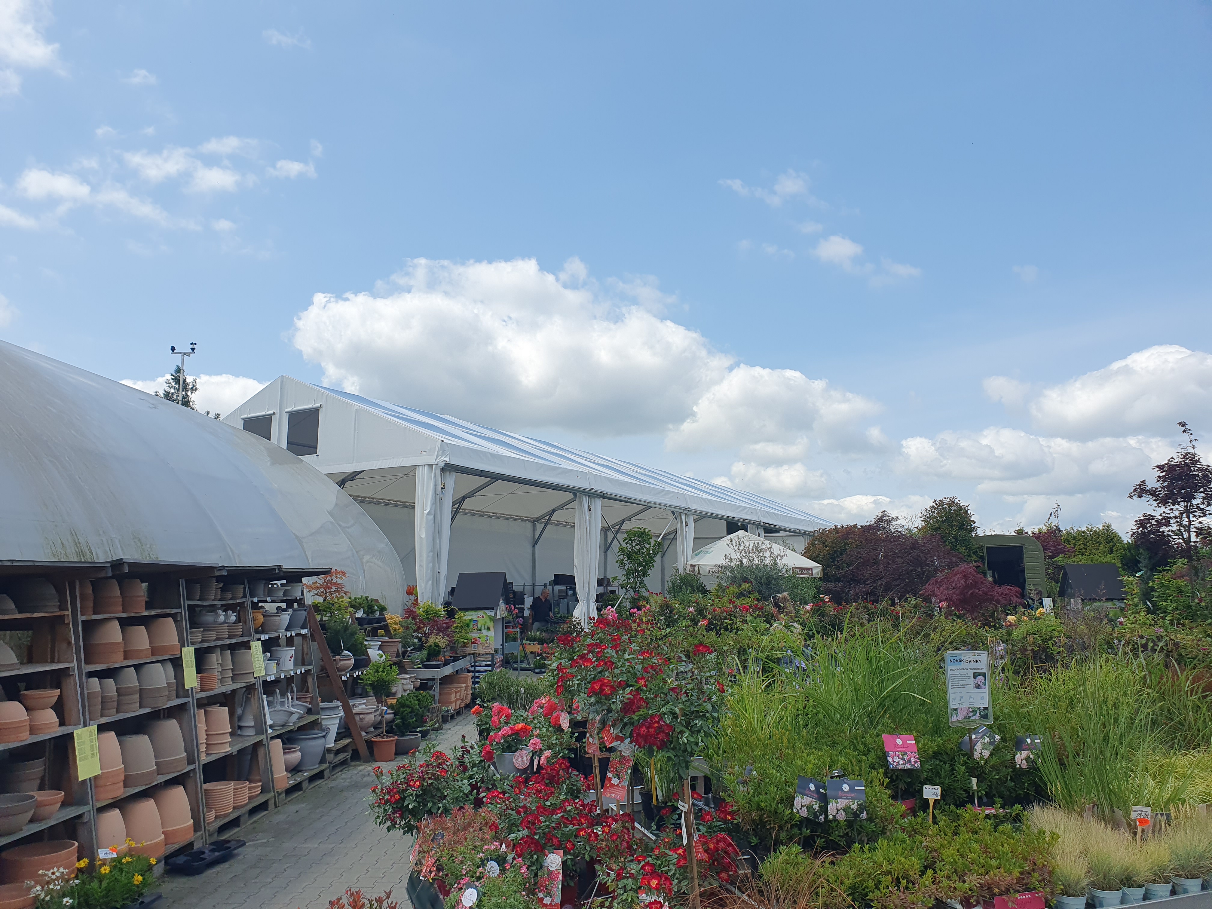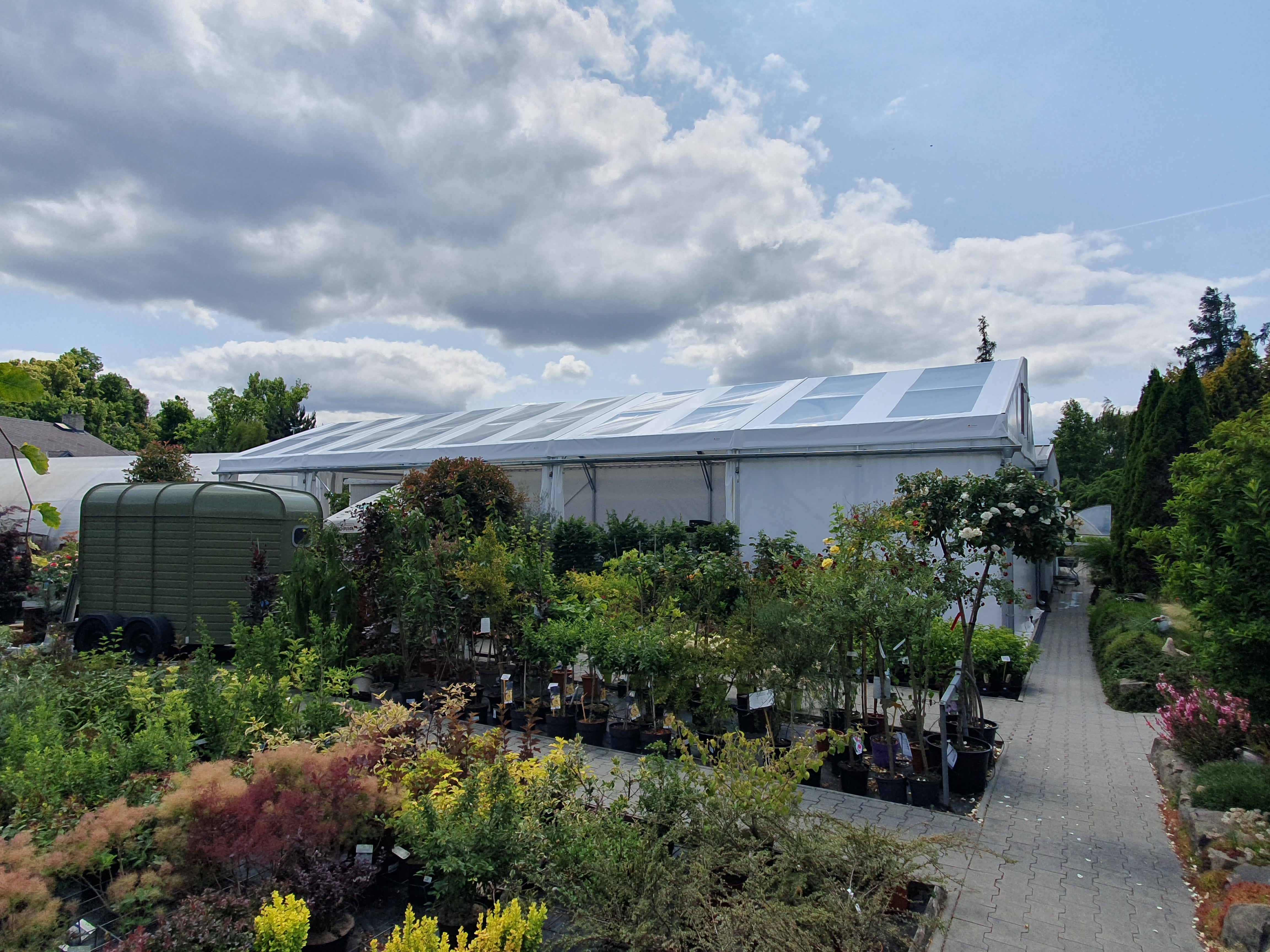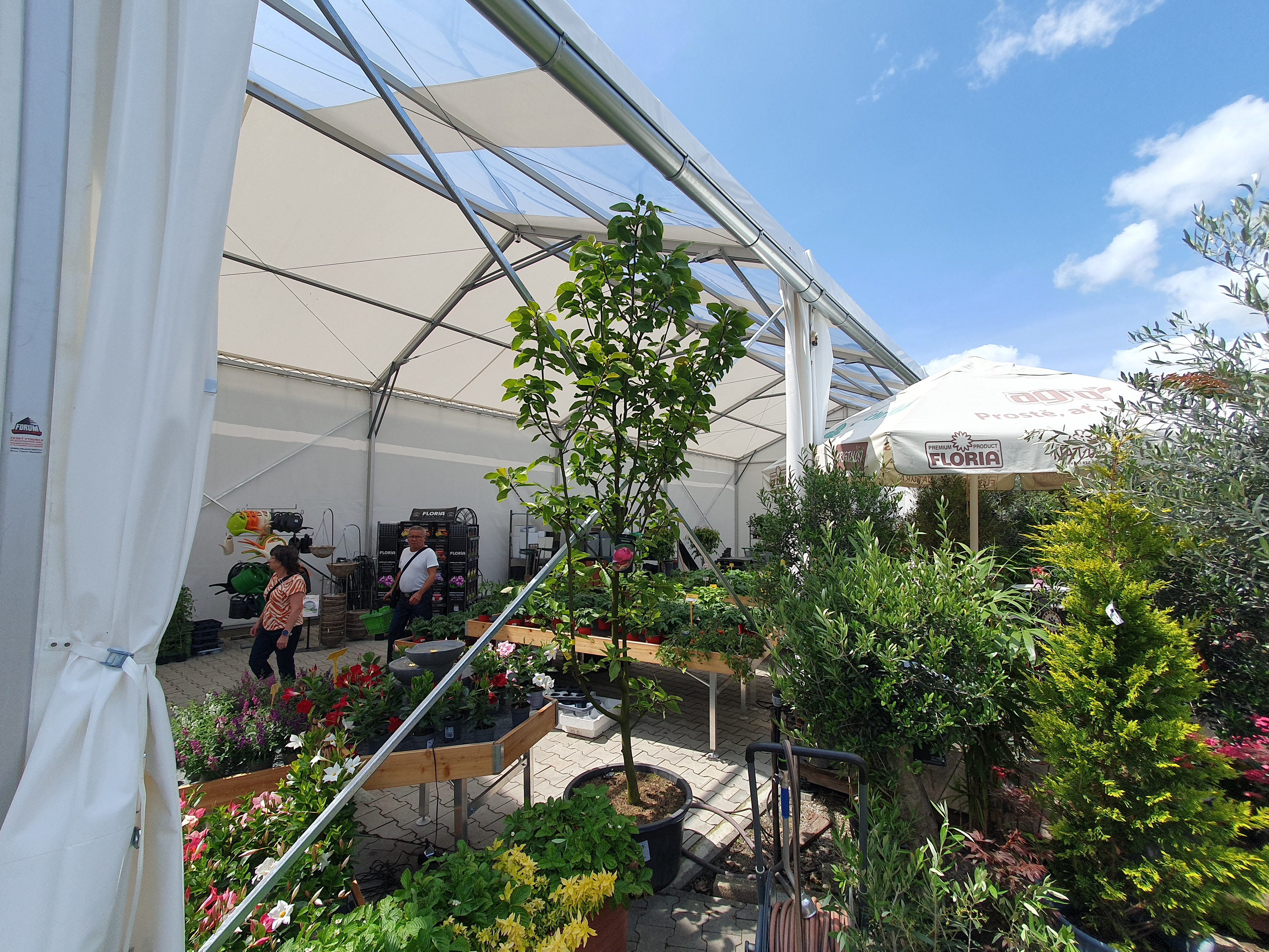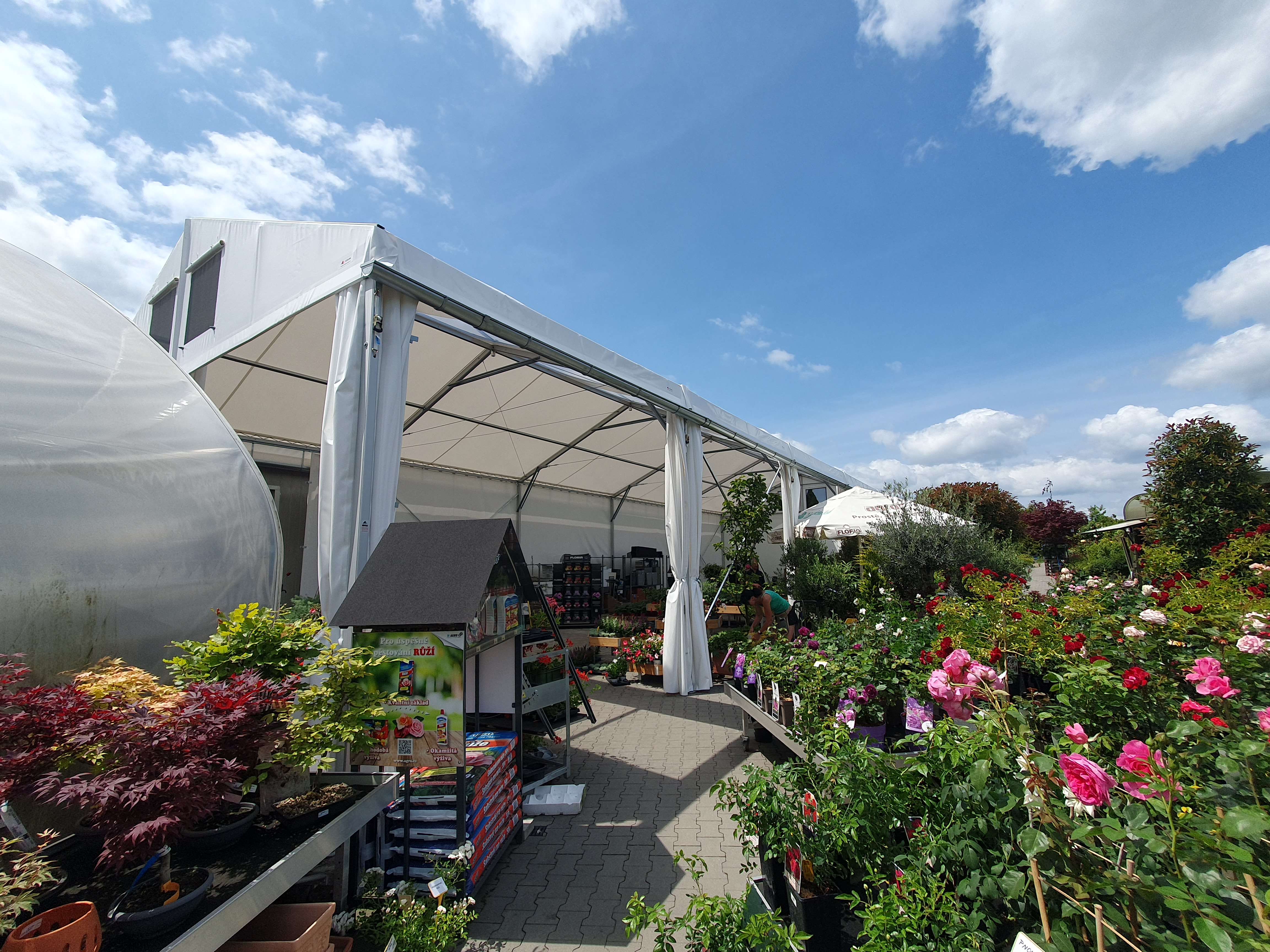 Flower shop and garden center in a tent hall. That's possible too. Specially modified tarpaulin cladding makes it possible.