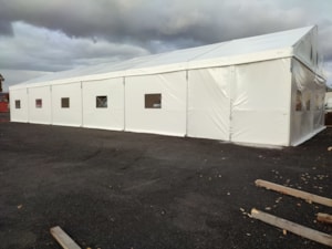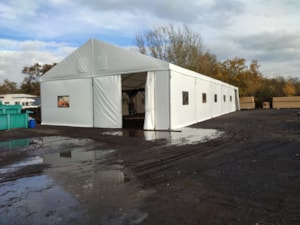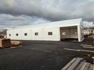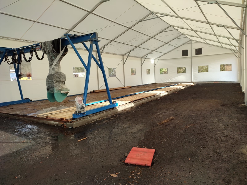 Here's another example of how our tent halls can be used. In this case, for processing raw wood.