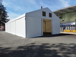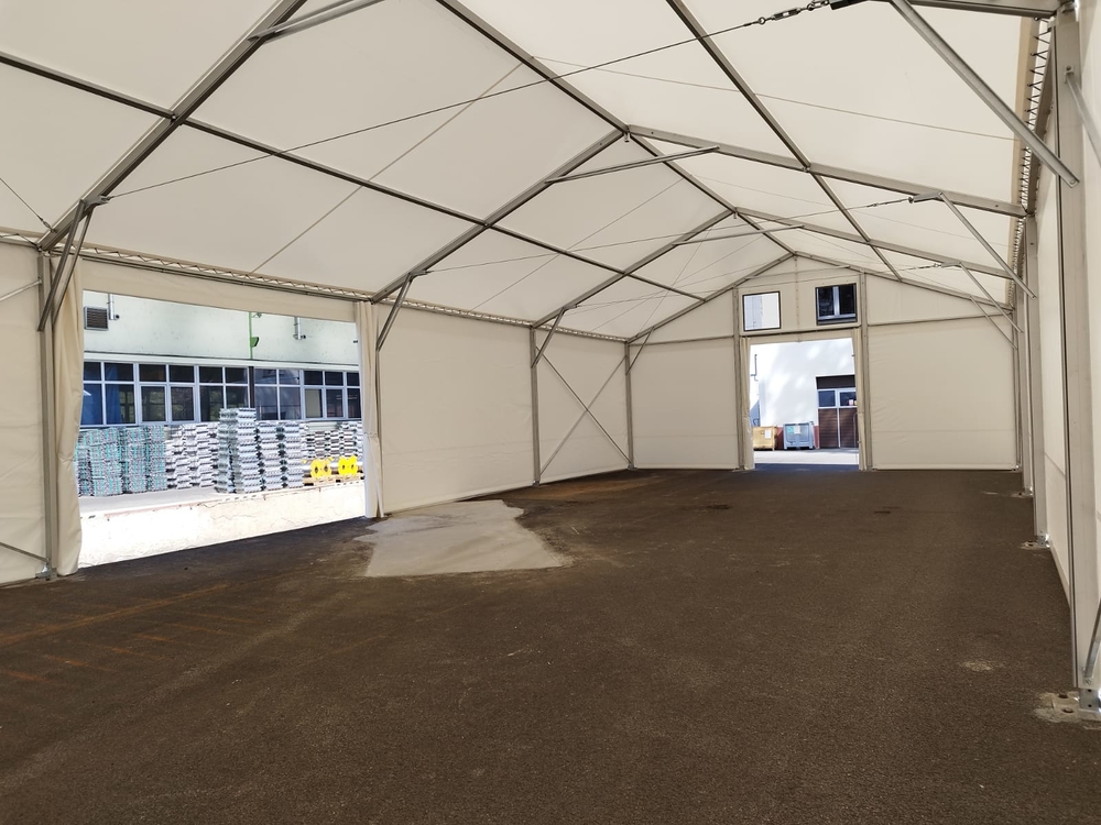 Our tent halls can be erected in many locations, including storage and loading ramps, where they can be filled directly with the necessary materials and products.