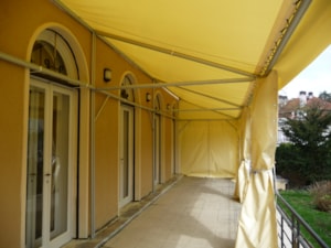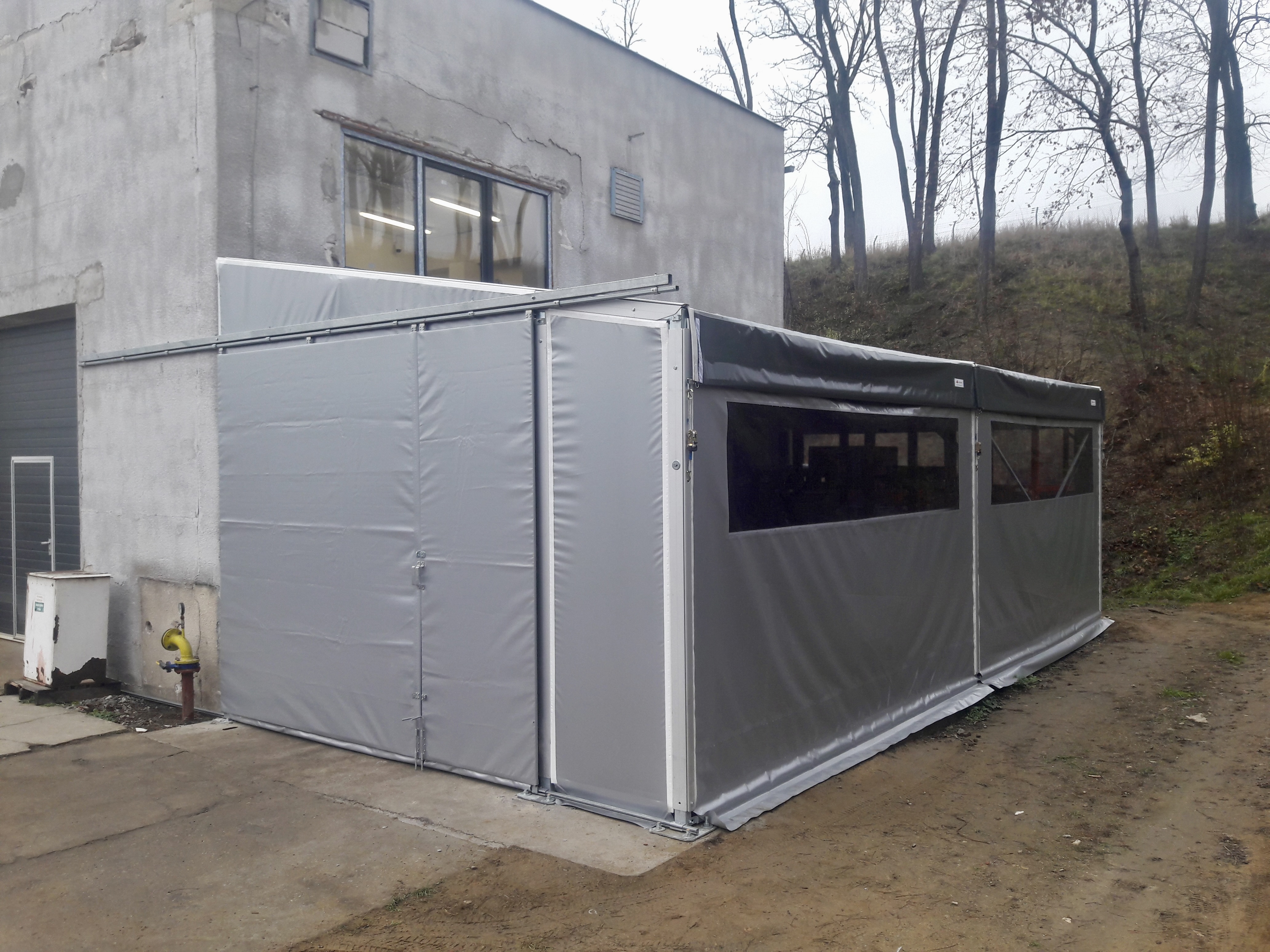 PVC-coated polyester fabrics and transparent PVC film, or PVC mesh