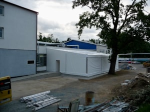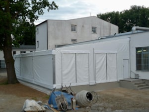 grooved profiles used for Forum Alfa large tents, made of aluminum alloy and steel connectors