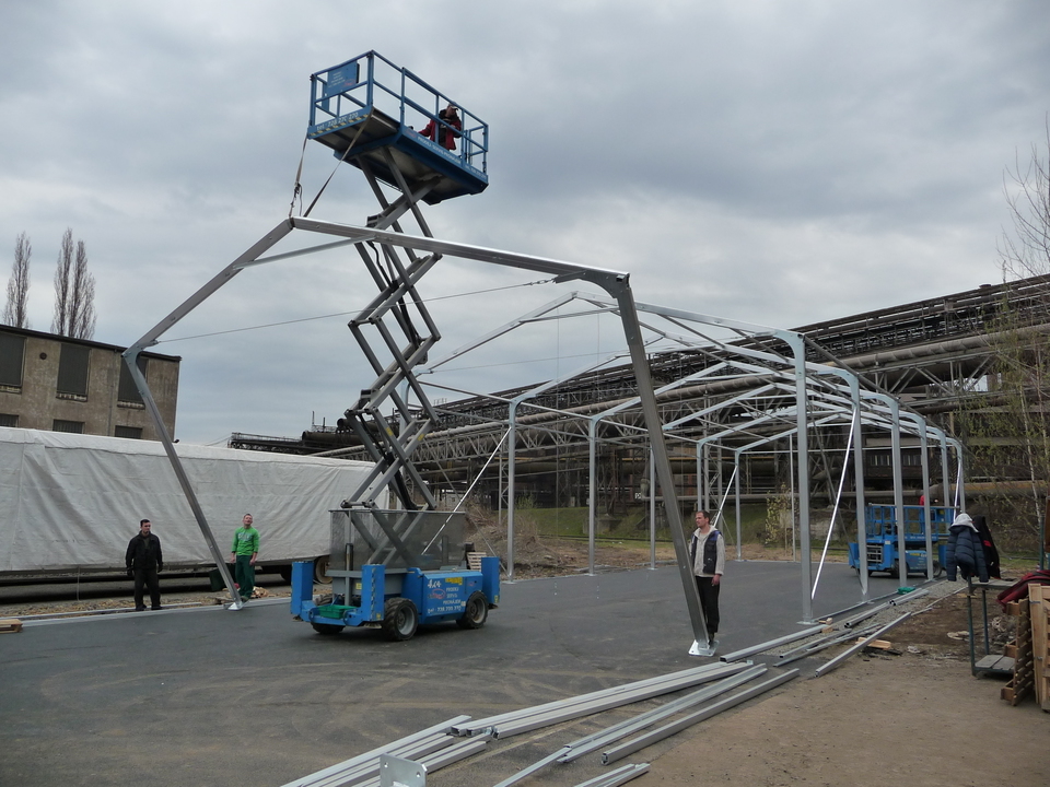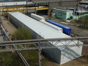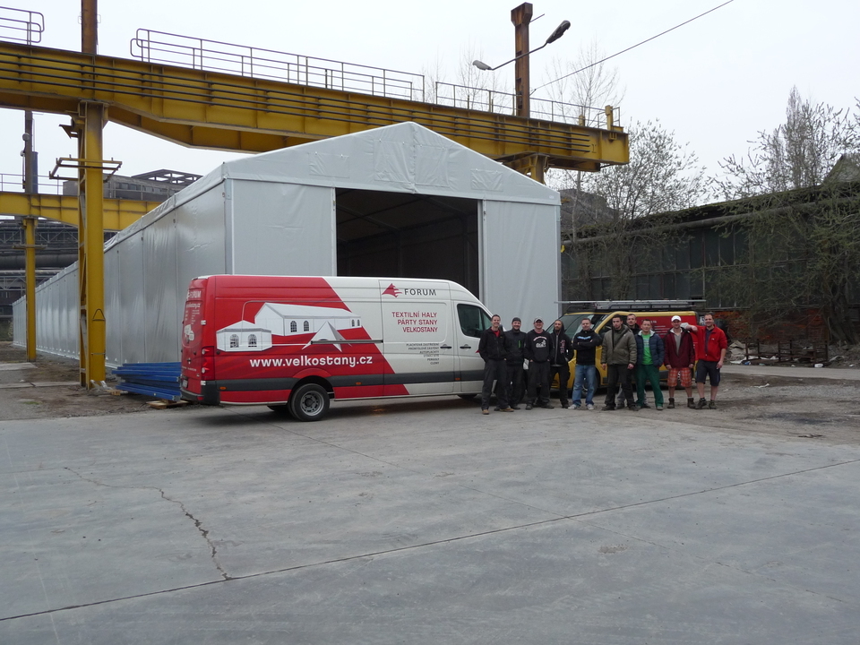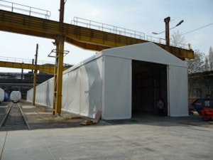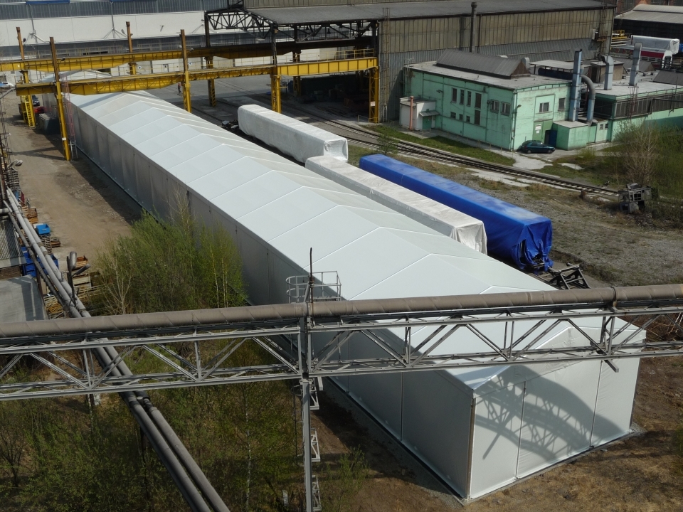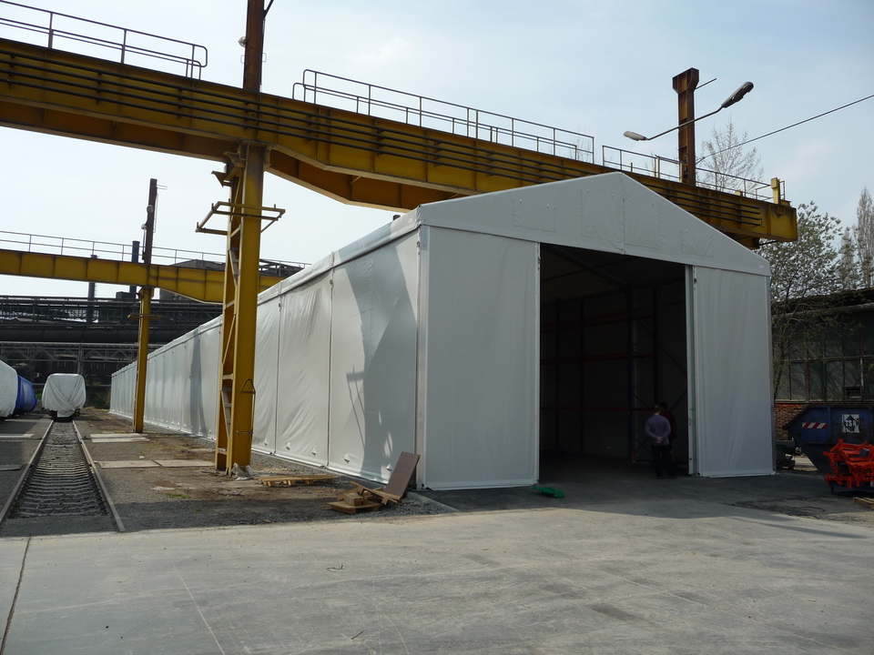 Custom-made for ŠKODA VAGONKA a.s. in Ostrava. It measures 10 meters wide and 100 meters long! The height of the hall wall is 5.4 meters, and the interior space is used for a racking system.