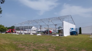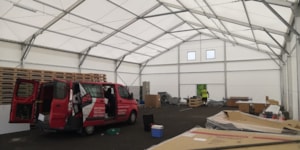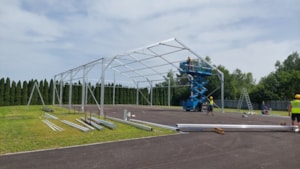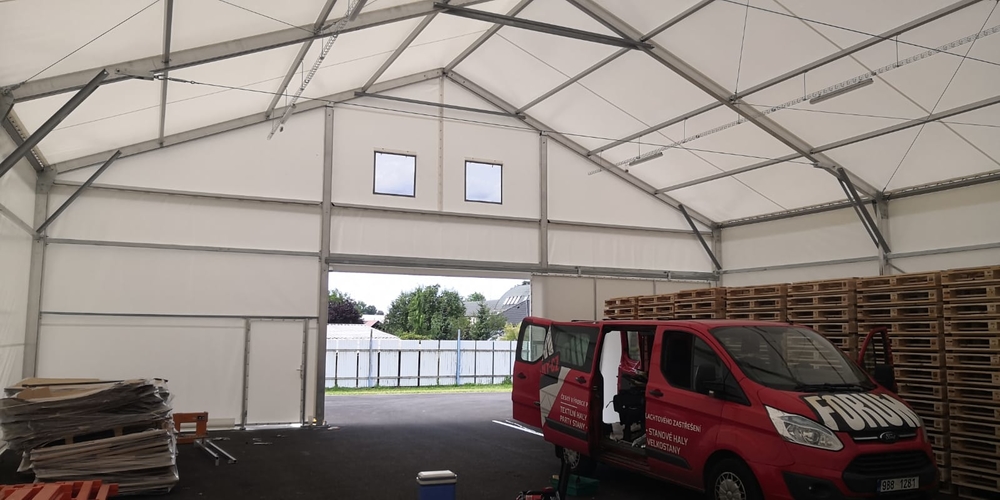 A 15x25m tarpaulin hall with a raised wall height of 4.6m built in Litovel.